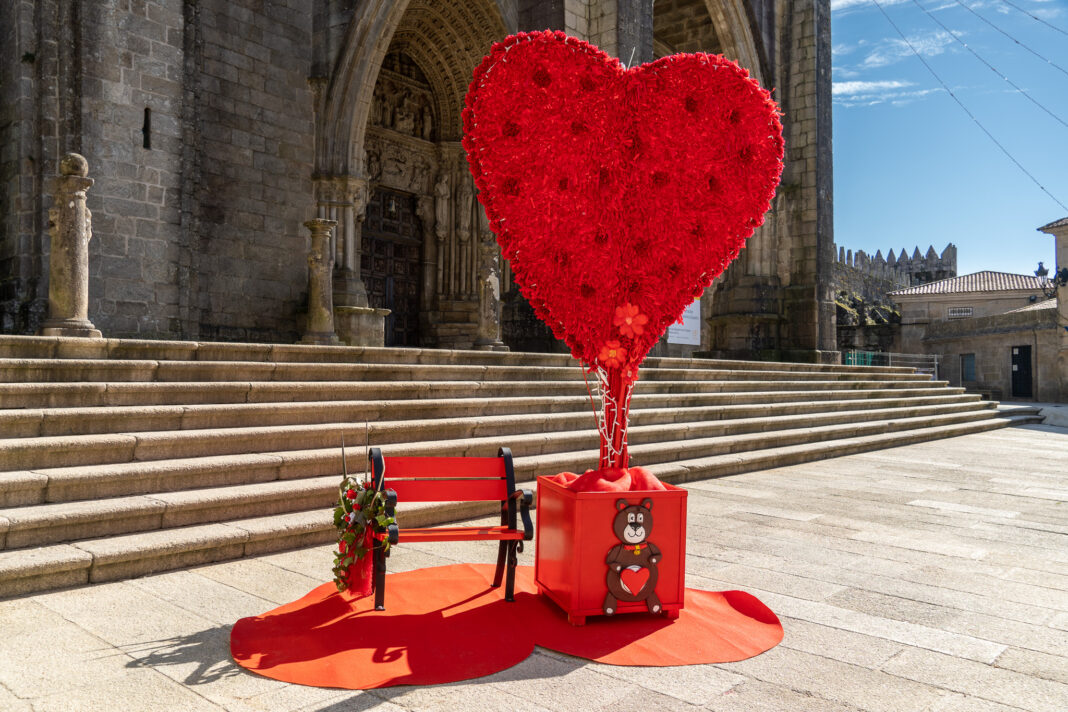 Un ano máis con este motivo instaláronse elementos decorativos a modo de photocall na Praza da Inmaculada e na Praza de San Fernando, así como un corazón iluminado na glorieta de Vigo. Estarán dende hoxe até o domingo día 19. Lánzase un concurso no que se premiará a fotografía con máis “me gusta”, cunha cea romántica e unha noite na casa rural Rectoral de Areas para dúas persoas.