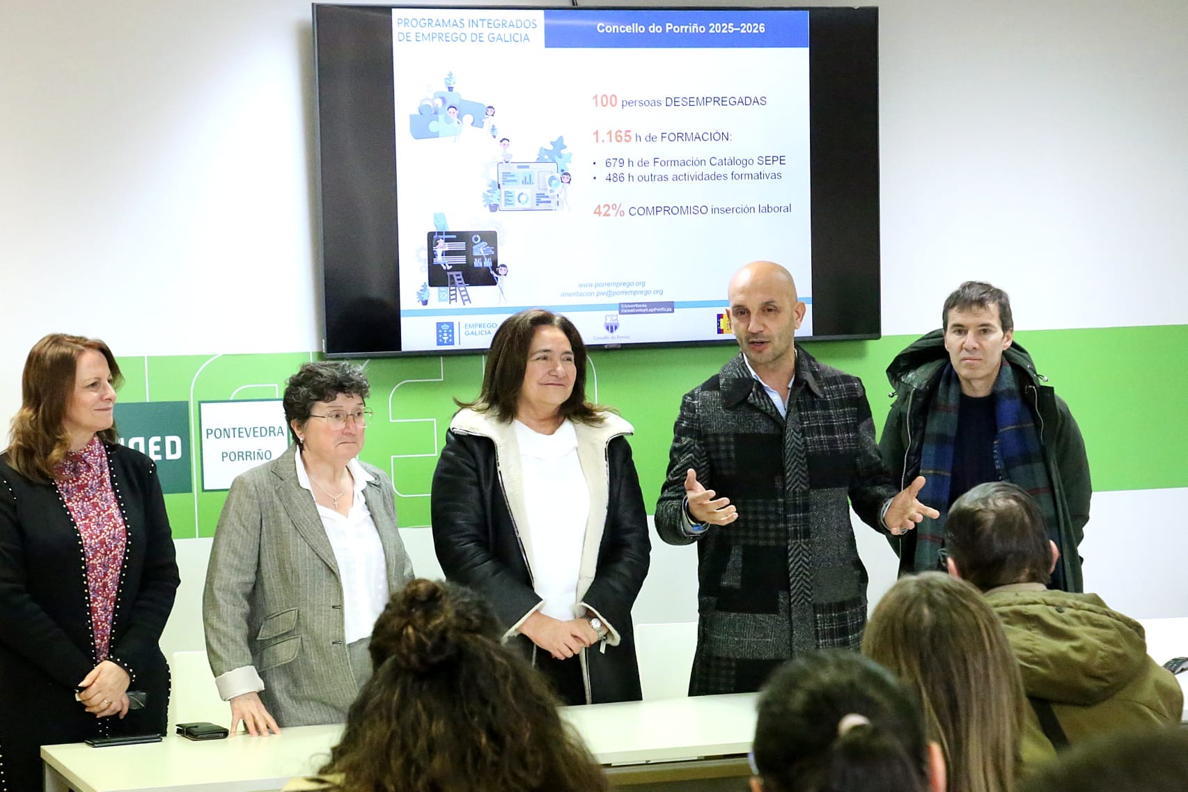 O acto contou coa presenza da delegada territorial da Xunta de Galicia en Vigo, Ana Ortiz; do director territorial de Emprego da Xunta de Galicia en Pontevedra, José Antonio Rodríguez Fachado; da concelleira de Emprego e Formación, Teresa Veloso; e do alcalde do Porriño, Alejandro Lorenzo, que acompañaron ao alumnado nesta primeira xornada formativa.