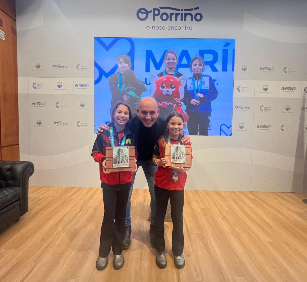 O alcalde do Porriño, Alejandro Lorenzo, recibiu esta semana na Casa Consistorial ás deportistas Sabela Gándara Iglesias e Ainara Gándara Iglesias, proclamadas recentemente campioas galegas de Marcha en Ruta nas súas respectivas categorías durante o Campionato Galego celebrado en Marín.