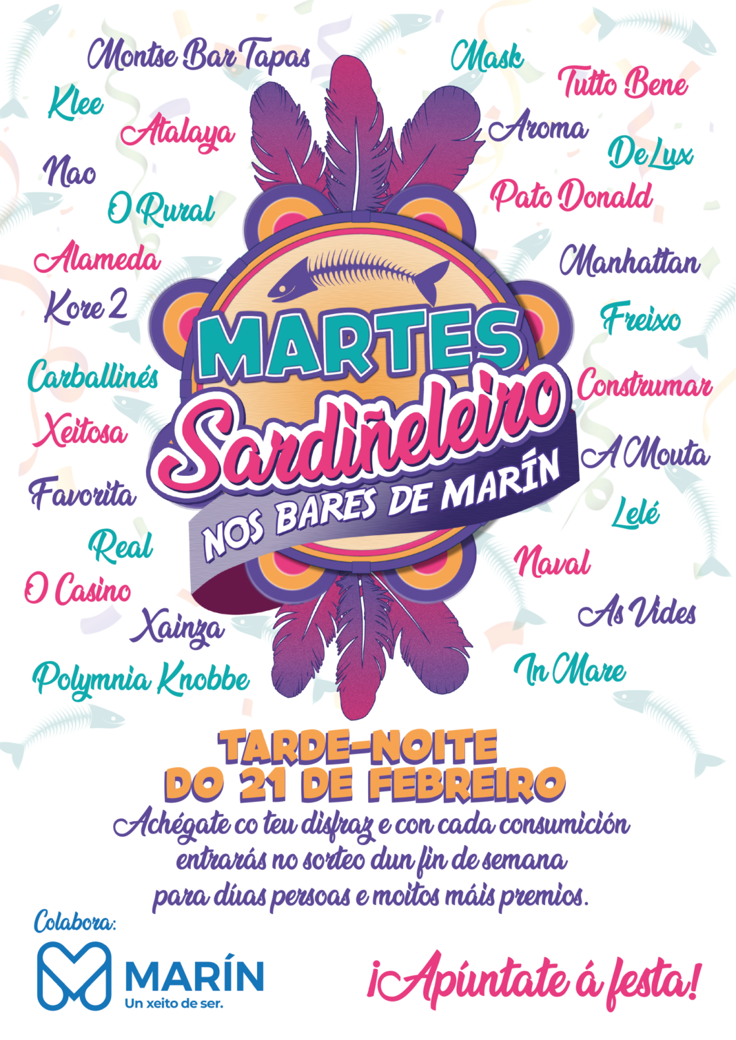 O Entroido de Marín terá, a partir de mañá, unha nova cita imperdible: o Martes Sardiñeleiro. Esta iniciativa, xurdida da unión da hostalaría marinense el colaboración co Concello, quere marcar unha tarde-noite entroidera de festa que recupere o espírito de estar de local en local, xerando ambiente e diversión na véspera do Mércores de Cinza.