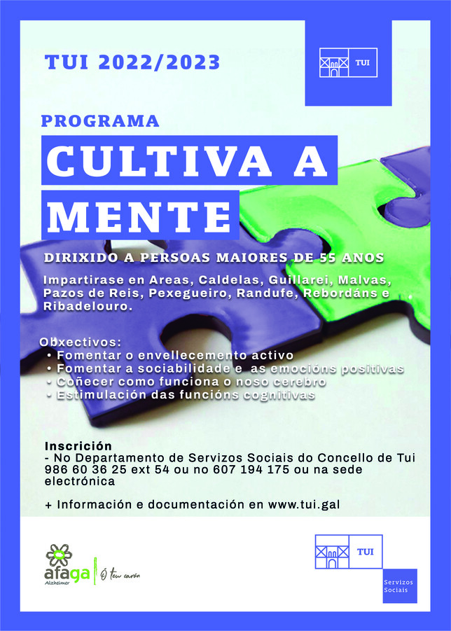 Pexegueiro contará tamén co programa Cultiva a Mente, que este novo curso chegará a nove parroquias tudenses. As persoas interesadas neste novo grupo de actividade poden realizar xa a súa inscrición descargando da web municipal a ficha de solicitude e presentándoa por sede electrónica en https://concellotui.sedelectronica.gal/ ou directamente nos Servizos Sociais na casa do concello. Pódese ampliar esta información no 986 60 36 25 ext. 25 ou no 607 194 175.