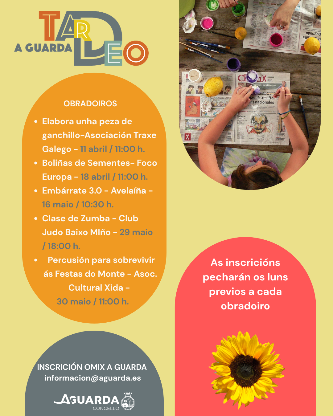 Toda esta oferta de obradoiros busca dar diferentes opcións de ocio na Guarda, con actividades relacionadas co traballo manual, a música e a natureza; e coa posibilidade de descubrir novo “hobbies”. Para a primavera de 2026, a programación do TARDEO é: