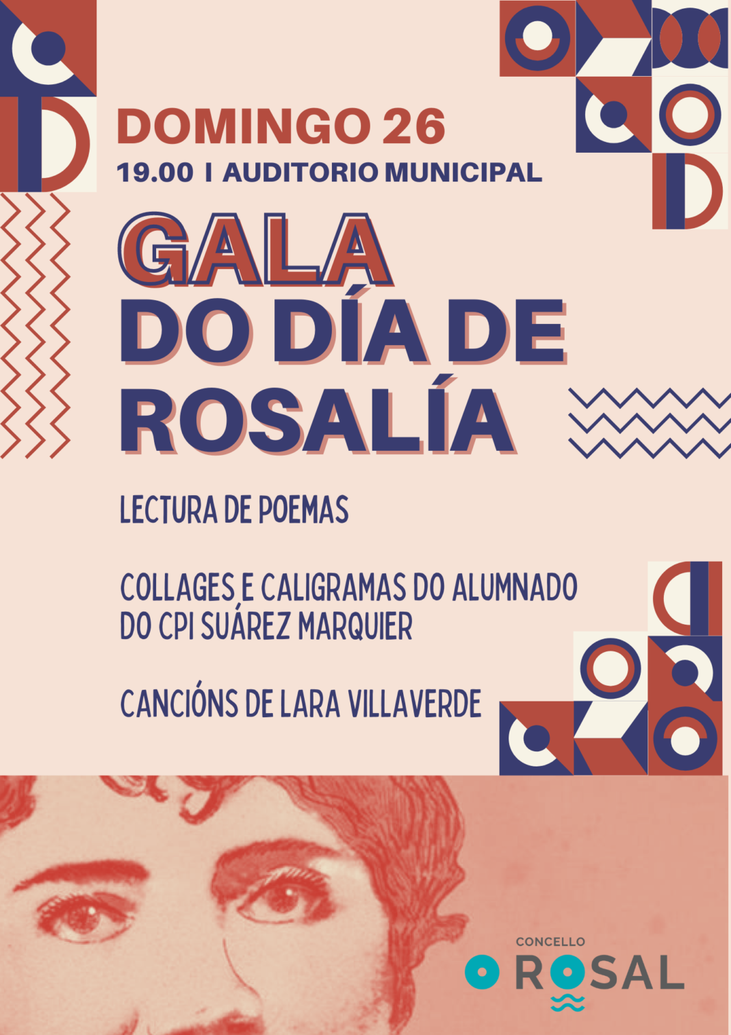 O Concello do Rosal conmemora o Día de Rosalía con poesía, música e moita arte. Este domingo 26 de febreiro, o auditorio municipal acolle a Gala do Día de Rosalía, un encontro no que o público poderá achegarse á figura da ilustre autora especialmente a través da palabra. “Con esta gala queremos homenaxear da mellor forma posible á escritora galega máis universal, precursora da poesía moderna, unha pioneira do pensamento feminista e a persoa que devolveu ao galego o seu carácter de lingua culta”, destaca a alcaldesa, Ánxela Fernández Callís.