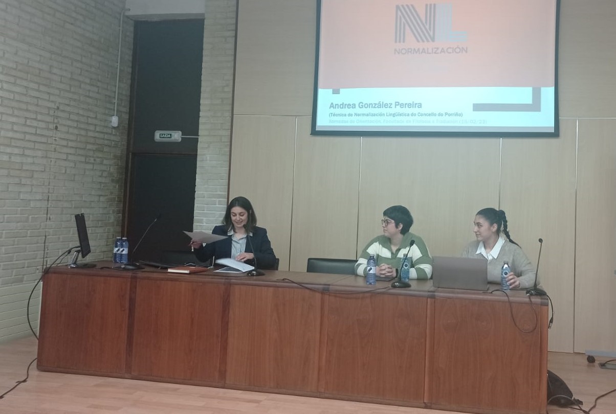 A universidade convidou á técnica de Normalización Lingüística do Concello do Porriño, Andrea González, a ofrecer unha panorámica do labor desenvolvido dende a súa creación ata a actualidade, así como dar a coñecer as súas funcións internas e coa cidadanía. Ademais, o alumnado da UVigo puido coñecer de primeira man información sobre os procesos selectivos para traballar neste tipo de servizos lingüísticos na Administración local.