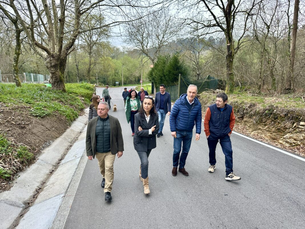 A alcaldesa, María Ramallo, e o concelleiro de Medio Rural, Pablo Novas, acompañados polo delegado da Xunta en Pontevedra, Agustín Regueira, visitaron as obras da segunda fase, que acaban de executarse por case 50.000 euros (IVE incluído), con cargo a unha subvención da Xunta de Galicia