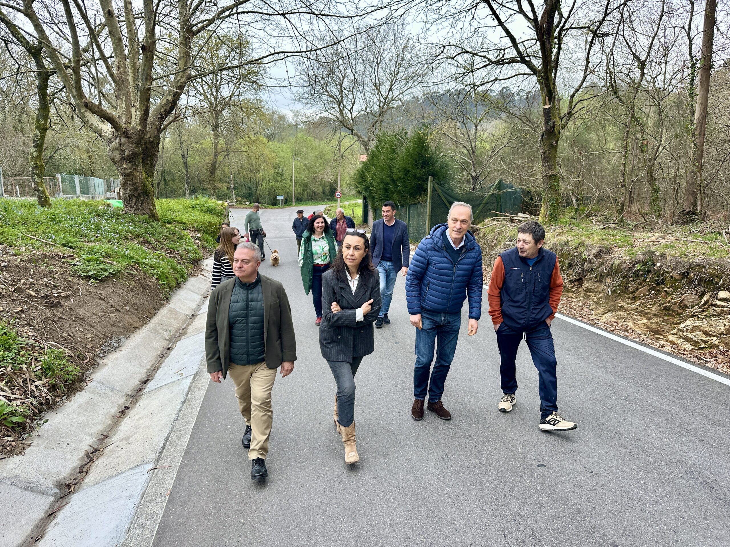 A alcaldesa, María Ramallo, e o concelleiro de Medio Rural, Pablo Novas, acompañados do delegado da Xunta en Pontevedra, Agustín Regueira, e da veciñanza da zona, visitaron as obras de mellora do mantemento da estrada de Pastoriza, por un importe de case 50.000 euros, que se financiarán con cargo a unha subvención do Plan Camiña Rural 2025-2026 da Axencia Galega de Desenvolvemento Rural.