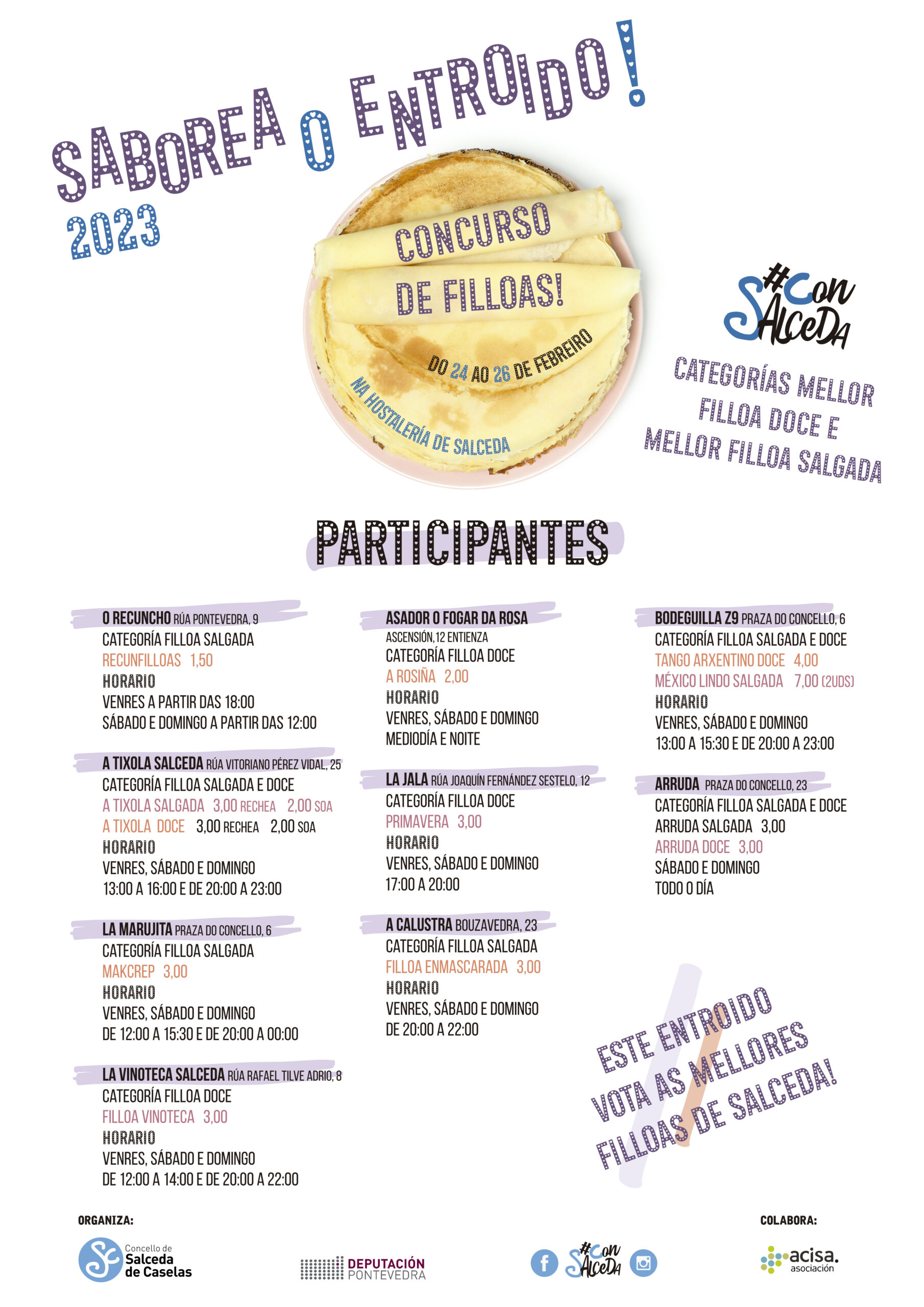 Por segundo ano o concello de Salceda de Caselas, en colaboración con ACISA, pon en marcha o concurso de filloas “Saborea o Entroido” os días 24, 25 e 26 de febreiro na hostalería local, dentro do Programa de Dinamización Comercial #ConSalceda.