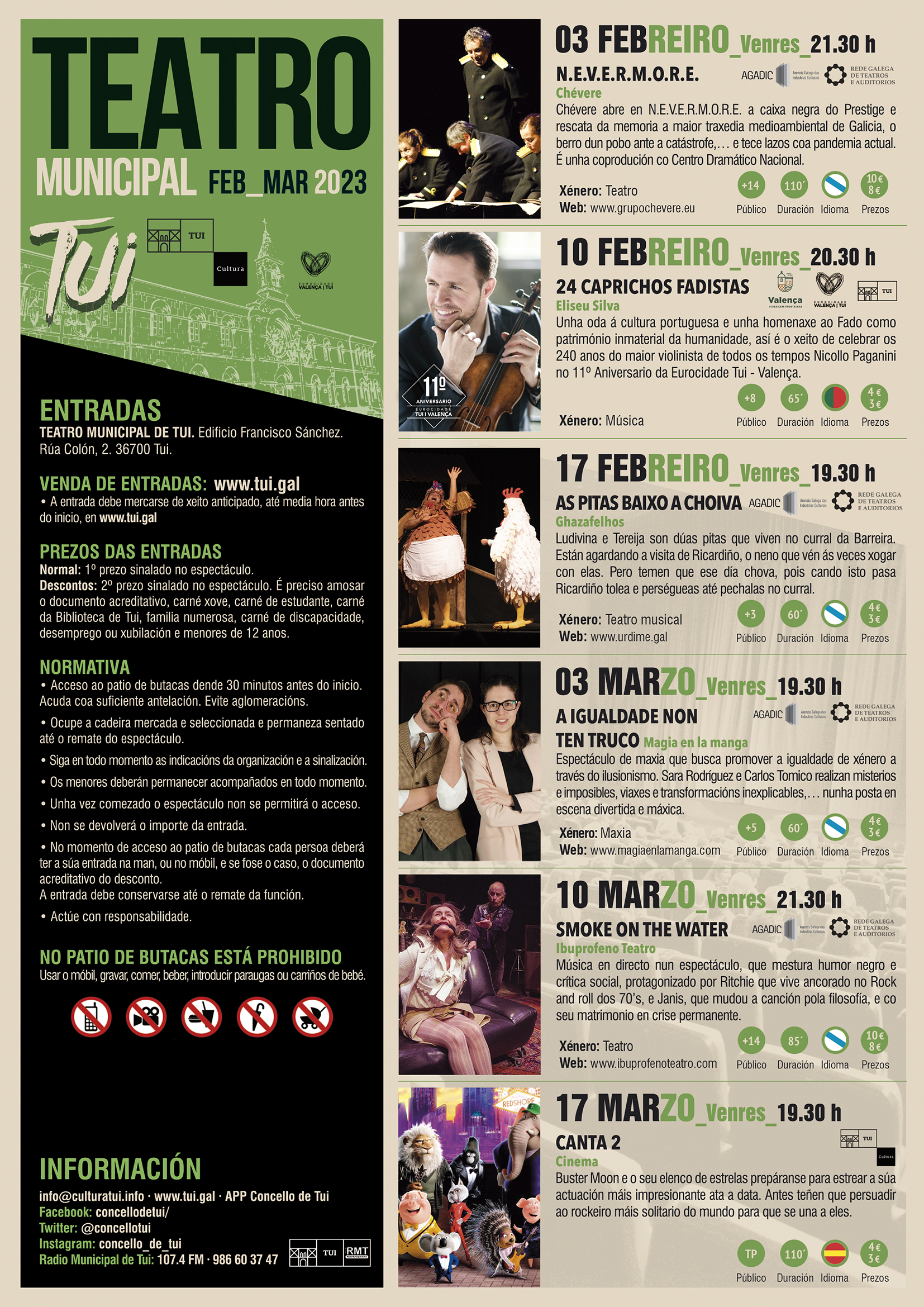 Toda a información desta programación teatral en Tui pódese consultar na web tui.gal onde tamén están dispoñibles as entradas para cada espectáculo.