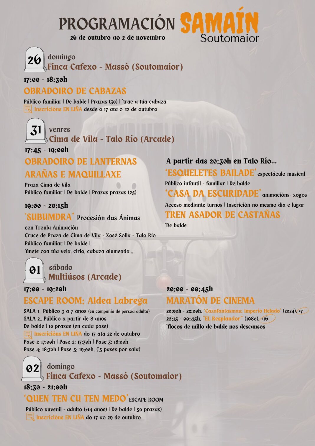 A noite das ánimas co espectáculo “Subumdra” de Troula animación, os escape room para público infantil e adulto e a Maratón de cine de terror serán algúns dos pratos fortes do Samaín de Soutomaior.
