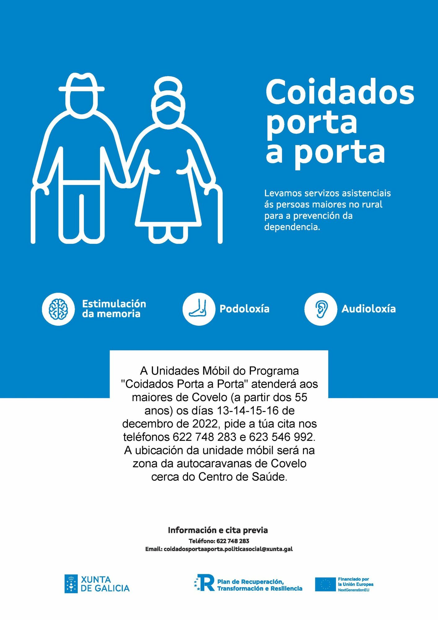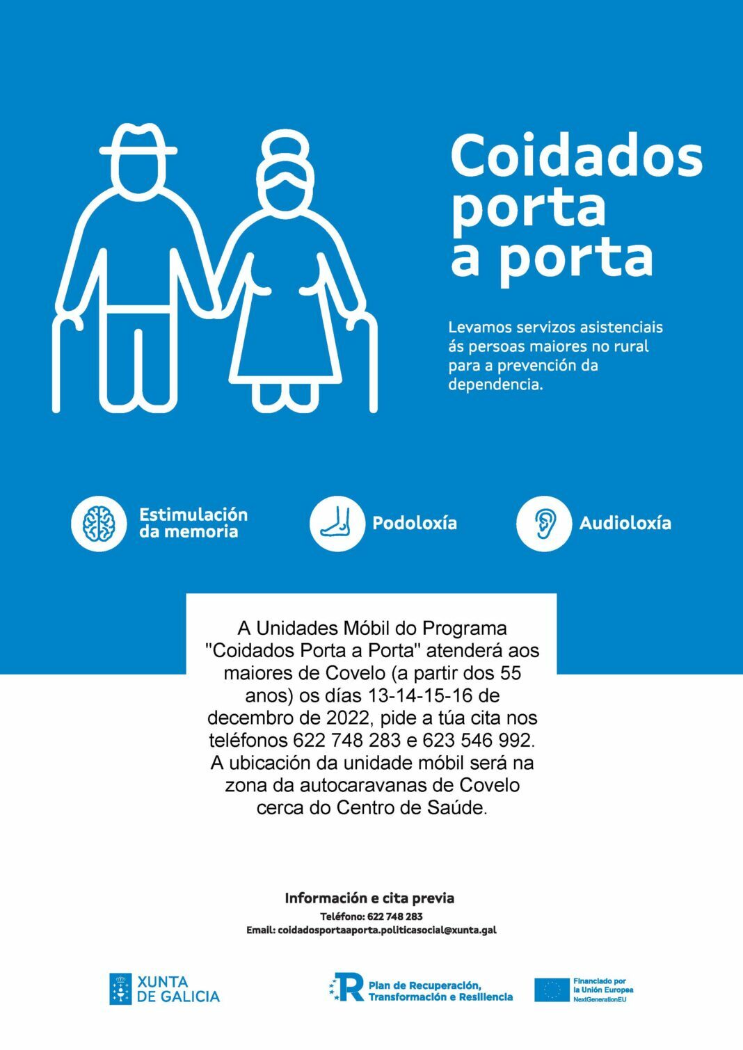 O Concello de Covelo convida a participar na tarde informativa sobre a saúde do pé que se ofrece totalmente de balde no auditorio municipal, debaixo das instalacións da biblioteca pública municipal co obxectivo de formar á poboación e previr posibles doenzas evitables con boas prácticas no día a día.