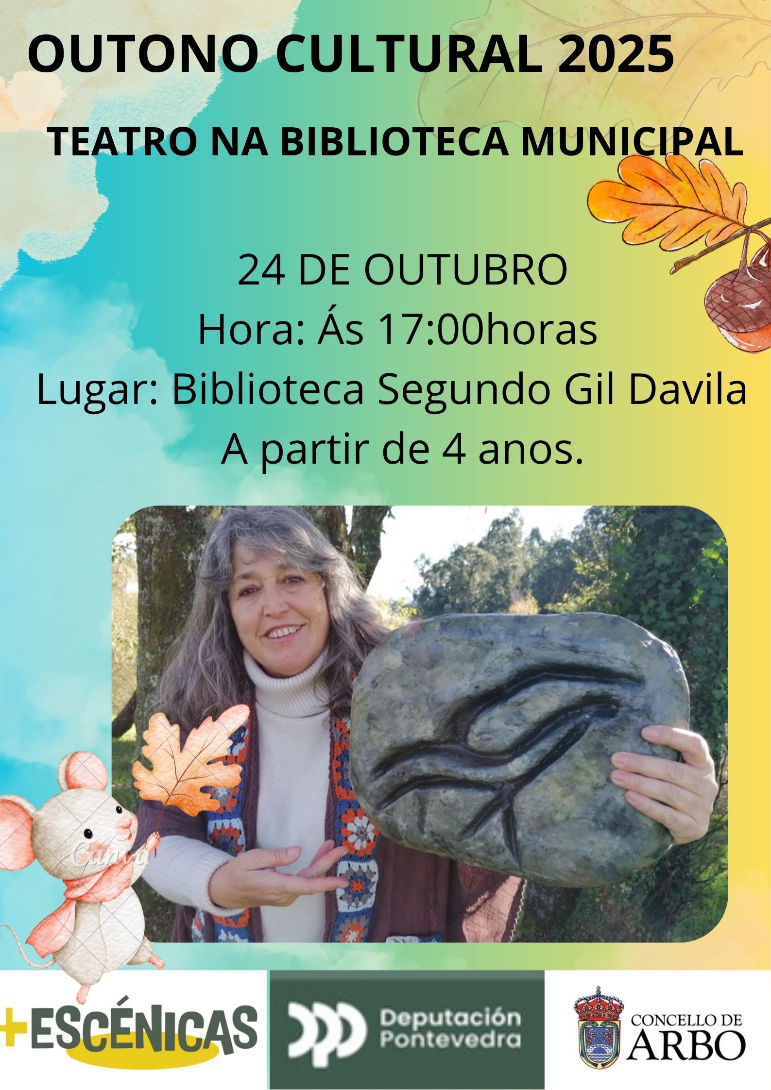 O Concello de Arbo anuncia unha nova proposta teatral dentro do marco do programa “Outono Cultural 2025”. A obra titulada “Petróglifos”, creada e dirixida por Carmen Domech, chegará á Biblioteca Municipal Segundo Gil Davila o próximo 24 de outubro ás 17.00 horas.