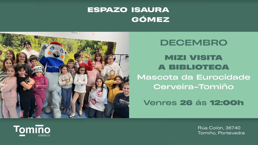 A programación arranca no Espazo Isaura Gómez, que se converte nun dos epicentros destas festas. O venres 26 de decembro ás 12.00 h, a protagonista será Mizi, a londra mascota da Eurocidade Cerveira-Tomiño, que visitará a biblioteca para coñecer aos cativos e cativas e seguir descubrindo os espazos de interese do territorio transfronteirizo. Un encontro pensado para o público familiar que mestura xogo, música e descubrimento nun ambiente festivo e acolledor.