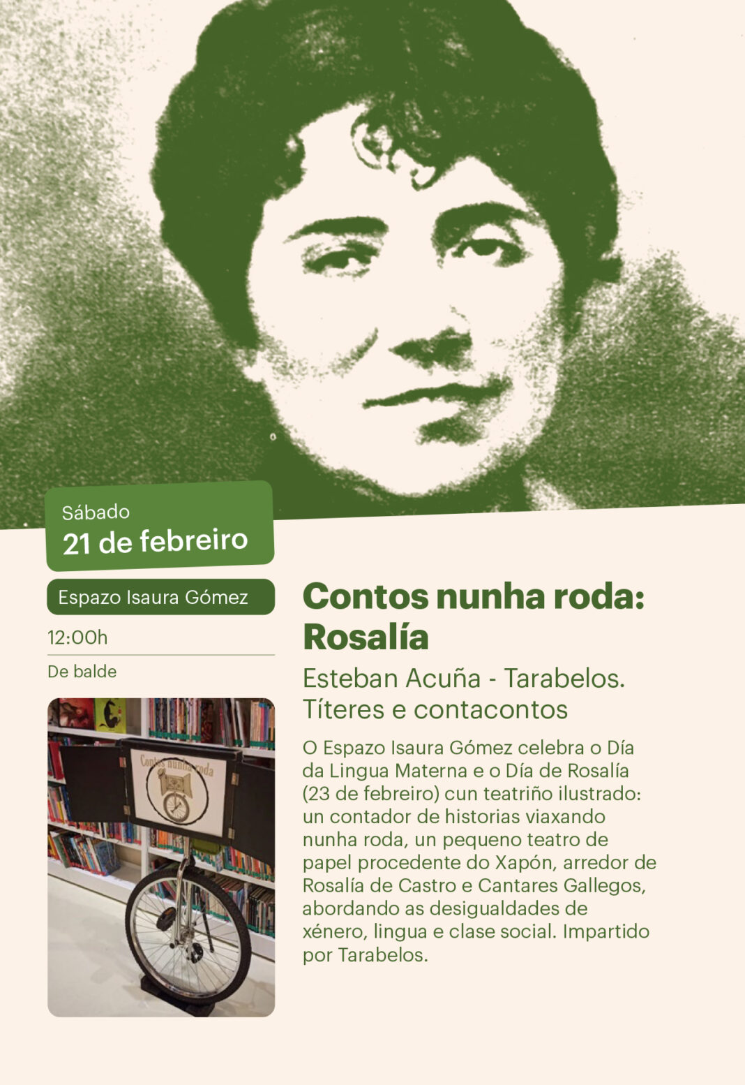 O Espazo Isaura Gómez acolle este sábado 21 de febreiros ‘Contos nunha roda: Rosalía’, unha proposta familiar para conmemorar o Día de Rosalía e da Lingua Materna