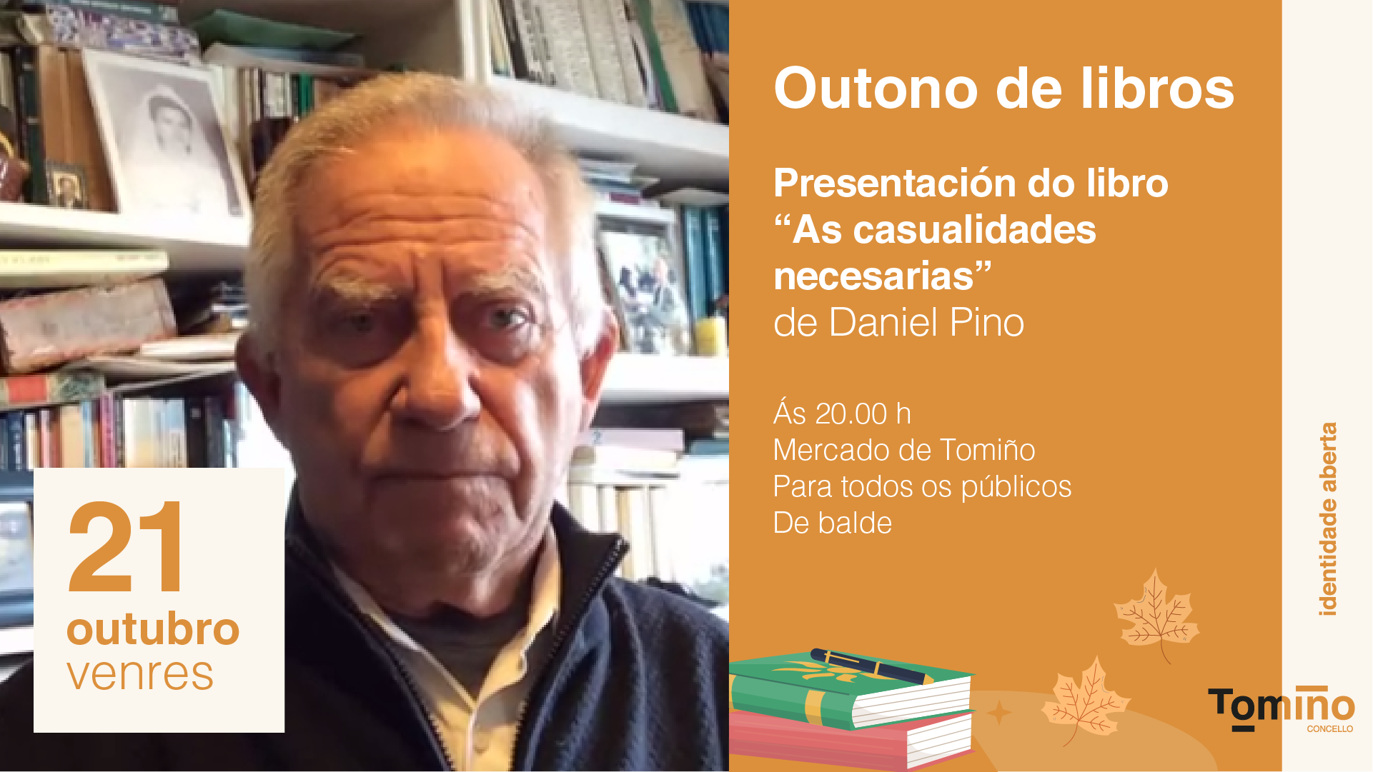 Para a alcaldesa de Tomiño, Sandra González, será “un orgullo presentar a obra dun tomiñés tan recoñecido como Daniel Pino, que xa foi homenaxeado na décima edición do Acto Cívico do Alivio no ano 2016”. “É unha ledicia contar neste programa literario a este sociólogo e urbanista de recoñecido prestixio nacional e internacional cun gran coñecemento da xeografía rural e urbana, unha das súas paixóns, e que nos sorprende cunha nova faceta, a da escrita de ficción”, destaca a rexedora.