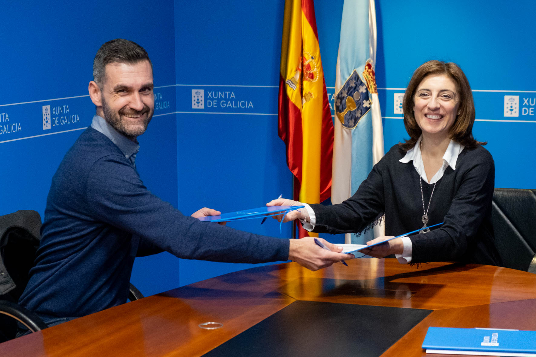 A conselleira Medio Ambiente, Territorio e Vivenda, Ángeles Vázquez, e o presidente da FAXPG, Íker Sertucha, renovaron esta mañá o convenio que desde hai varios anos manteñen ambos organismos co fin de avanzar na eliminación das barreiras comunicativas e contribuír a favorecer a integración social das persoas xordas.