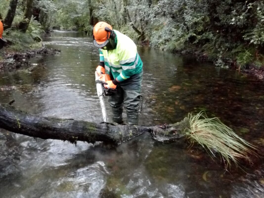 ― As tarefas realizaranse ao longo de algo máis de 7,6 quilómetros e inclúen a retirada de árbores e pólas caídas na canle, e roza selectiva en tramos con maleza