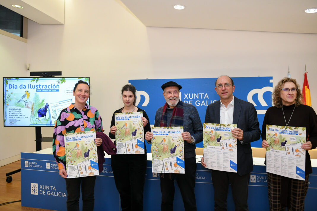 A Xunta de Galicia conmemorará o Día da Ilustración 2026 con máis dunha vintena de actividades nas bibliotecas de xestión autonómica ao redor da figura e obra do artista Siro López, artista homenaxeado este ano. Así a presentou hoxe o director xeral de Cultura, Anxo M. Lorenzo, quen precisou que a programación abrangue unha exposición, un vídeo, obradoiros, sesións de narración oral, concurso de caricaturas e un mural e colaxe comunitaria, ao que se sumarán mostras bibliográficas sobre a traxectoria deste artista natural de Ferrol.