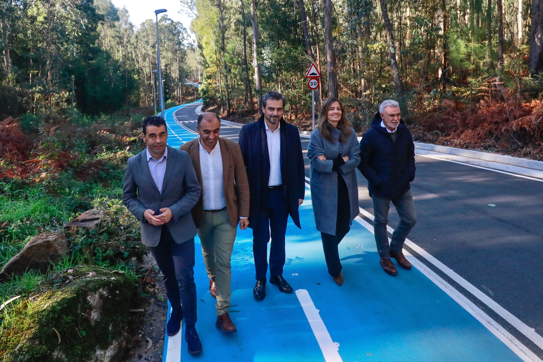 O conselleiro de Presidencia, Xustiza e Deportes, Diego Calvo, acompañado pola directora xeral de Administración Local, Natalia Prieto, comprobou hoxe en Poio os resultados das obras para a creación do carril bici e unha senda peonil entre Chancelas e Combarro, executadas co apoio da Xunta. O Goberno galego destinou case 256.000 euros á iniciativa, a través da liña de colaboración para proxectos de carácter estratéxico en infraestruturas municipais do fondo adicional ao Fondo de Cooperación Local (FCL), dotada con 8,5 millóns de euros.