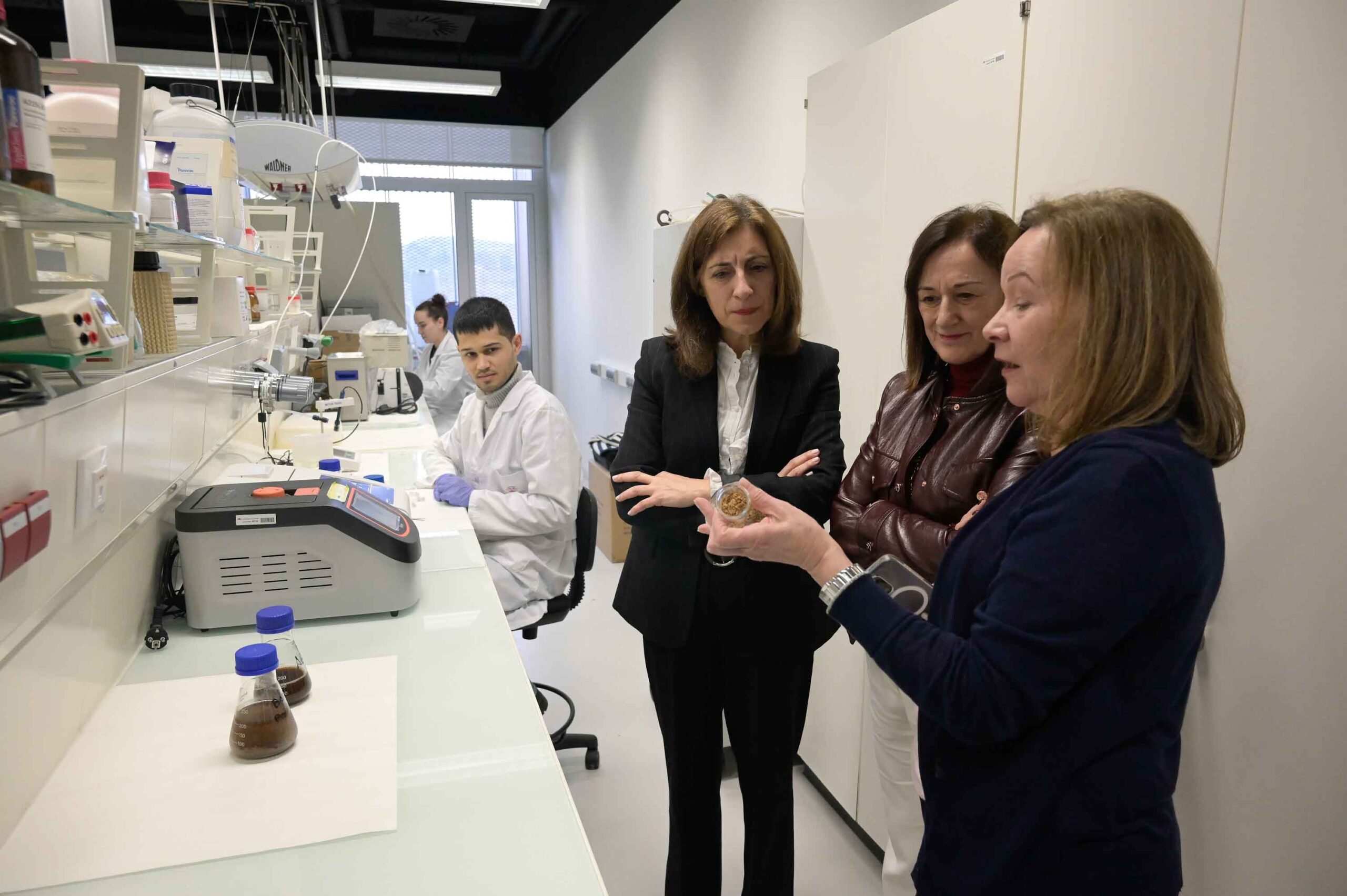 Nesa liña, logo de subliñar que Bioengin está recoñecido como Grupo de Referencia Competitiva pola Xunta de Galicia, a conselleira puxo como exemplo do seu labor o proxecto Bialac, que leva a cabo en colaboración con varias entidades, entre elas Emalcsa e Innolact. Neste caso, o obxectivo é desenvolver un biomaterial baseado en polímeros biodegradables a partir do soro fermentando e residuos industriais para transformalos en produtos de alto valor.