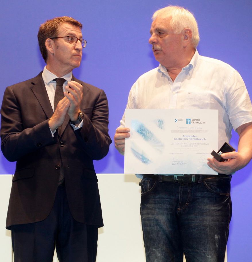 Alexander Kachelaev recibiu da man do presidente da Xunta de Galicia a distinicón ao Mérito Deportivo de Galicia no ano 2017, unha medalla que recoñece o labor e a traxectoria notoria e exemplar no ámbito deportivo de Galicia das persoas físicas ou xurídicas, entidades ou organismos, que estean contribuíndo ou contribuísen ao crecemento, á promoción, ao fomento e á excelencia do deporte e da educación física da nosa Comunidade Autónoma.