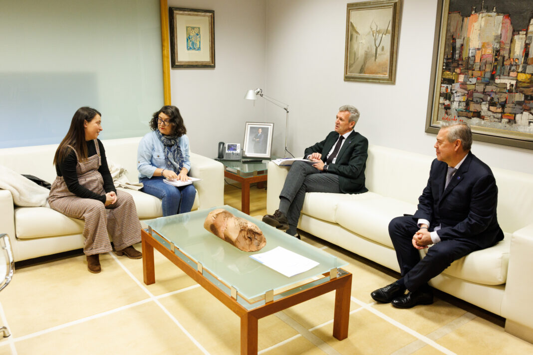 O presidente da Xunta, Alfonso Rueda, mantivo esta semana un encontro con Carmen López, directora sociosanitaria da Federación Galega de Enfermidades Raras e Crónicas (Fegerec), e Rocío Varela, membro da xunta directiva, na que puido coñecer de primeira man as inquedanzas e propostas desta entidade, que conta con máis de 700 socios e máis de 4.000 beneficiarios.