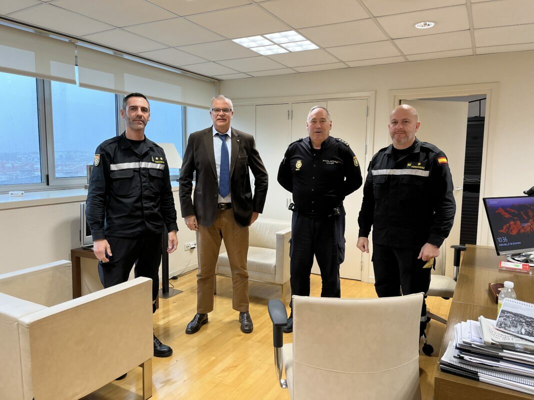 O director xeral de Emerxencias e Interior, Santiago Villanueva, acompañado do comisario xefe da Policía Autonómica, Jorge Rubal, recibiu hoxe o tenente coronel Daniel Constantino Casado, que desde o pasado setembro se atopa á fronte do V Batallón de Intervención en Emerxencias (BIEM) da Unidade Militar de Emerxencias (UME). Ao encontro tamén asistiu o xefe de área de Relacións Institucionais e Comunicación Pública do BIEM, o comandante Iván Fernández.